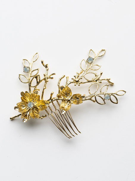 新作の髪飾りは、葉をくり抜いた優美なシルエットが特徴。