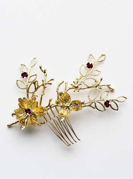 新作の髪飾りは、葉をくり抜いた優美なシルエットが特徴。